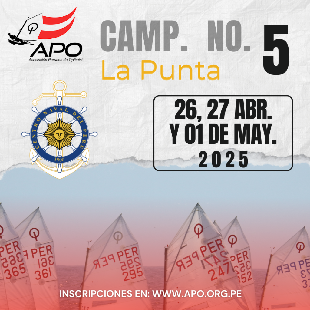 OPTIMIST: Camp. No. 5 – \»CNP\» [La Punta, 26, 27 Abr. y 01 de May. 2025] Regatas & Eventos / giovanni.mv OPTIMIST: Camp. No. 5 – \»CNP\» [La Punta, 26, 27 Abr. y 01 de May. 2025] Leer más »